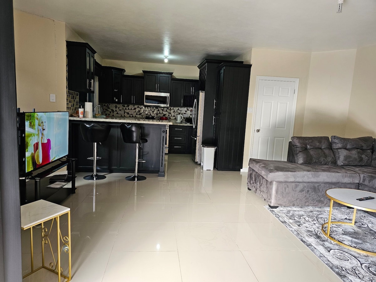 Apartemen studio yang chic di perbukitan Mandeville yang sejuk, menawarkan kenyamanan modern dengan tempat tidur king, AC, dapur lengkap, balkon pribadi, WiFi cepat, TV pintar, mesin cuci/pengering di dalam unit, perapian, ruang kerja khusus, futon, kolam renang, dan pusat kebugaran. Terletak di pusat dekat pusat kota dengan akses mudah ke toko, restoran, dan taman. Menawarkan check-in mandiri yang aman + parkir gratis di lokasi, di kompleks apartemen berpagar yang tenang—ideal untuk bekerja atau bersantai di suasana tropis yang tenang.
