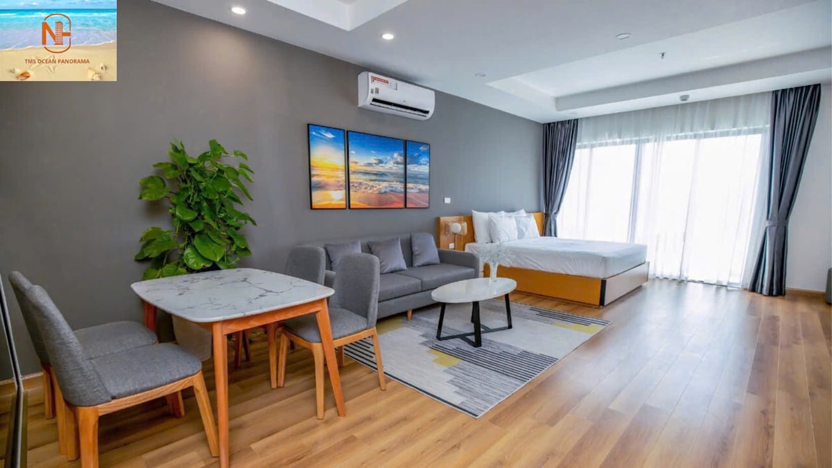 - Vị trí; gần các địa điểm ăn uống, tòa nhà đối diện biển và thuận tiện cho việc đi lại. - Thiết kế: hiện đại, ban công thoáng mát, không gian yên tỉnh & có view biển. - Tiện nghi: đầy đủ bếp và dụng cụ nấu, không gian làm việc lí tưởng, nội thất decor sang trọng. - Trải nghiệm: mang lại cảm giác thư giãn, là nơi lí tưởng cho các hoạt động vui chơi và nghĩ dưỡng cho gia đình, bạn bè hay các cặp đôi.