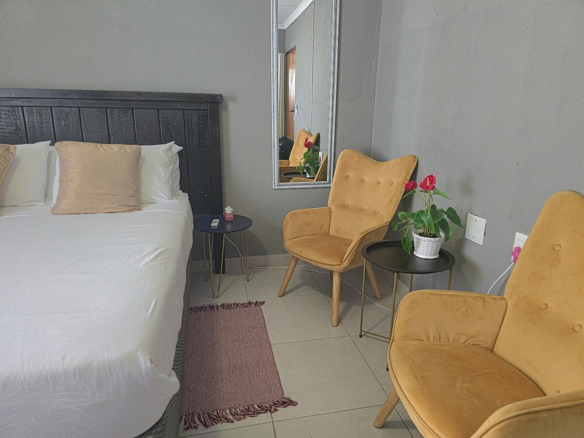 This rondavel is furnished with a queen-size bed and features an en-suite bathroom. The unit offers air-conditioning, a TV with Netflix, a desk, a bar fridge, tea/coffee facilities, a microwave, free Wi-Fi access, and a patio.