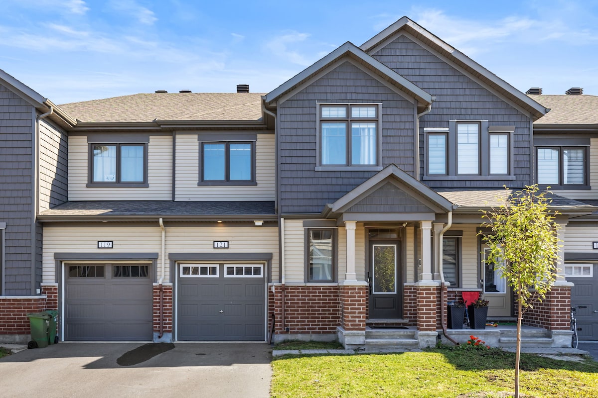 SELAMAT DATANG! Ke rumah baru besar bergaya Anda di lingkungan tinggal kelas atas yang aman di Half Moon Bay, Ottawa. Sangat cocok untuk keluarga, rekan kerja & teman LOKASI LUAR BIASA 7 menit ke: Barrhaven Town Centre(dengan toko besar, supermarket & restoran), Amazon, Costco & 416 hwy 25 menit ke pusat kota. 13 menit ke Via Rail – Stasiun Fallowfield 21 menit ke bandara, E&Y Centre, stadion TD Place 22 menit ke Canadian Tire Centre. 10 ke Sungai Rideau 4 menit ke Kompleks Rekreasi Minto - Barrhaven Kami tak sabar menyambut Anda!