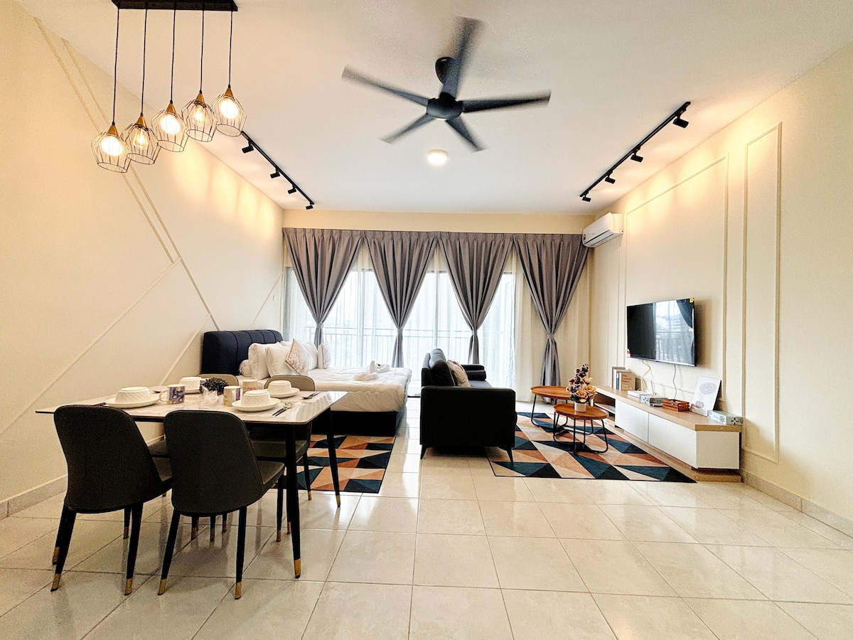 Bersantai di studio yang nyaman, lengkap, dan bergaya ini di blok apartemen premier baru di dekat KLIA. Di samping Mesamall dengan toko kelontong, restoran, bioskop & banyak lagi. Nikmati tempat tidur king, WiFi 200Mbps, Google TV 43”, dapur, meja makan & meja kerja - sempurna untuk beristirahat atau bekerja dari jarak jauh. Bersantai di kolam renang infiniti dengan pemandangan pegunungan, tetap bugar di pusat kebugaran lengkap, atau bersantai di area atap dengan pemandangan menakjubkan. Ideal untuk masa inap jangka pendek atau panjang. Baik jika terbang atau bekerja dari jarak jauh, tempat ini terasa seperti di rumah