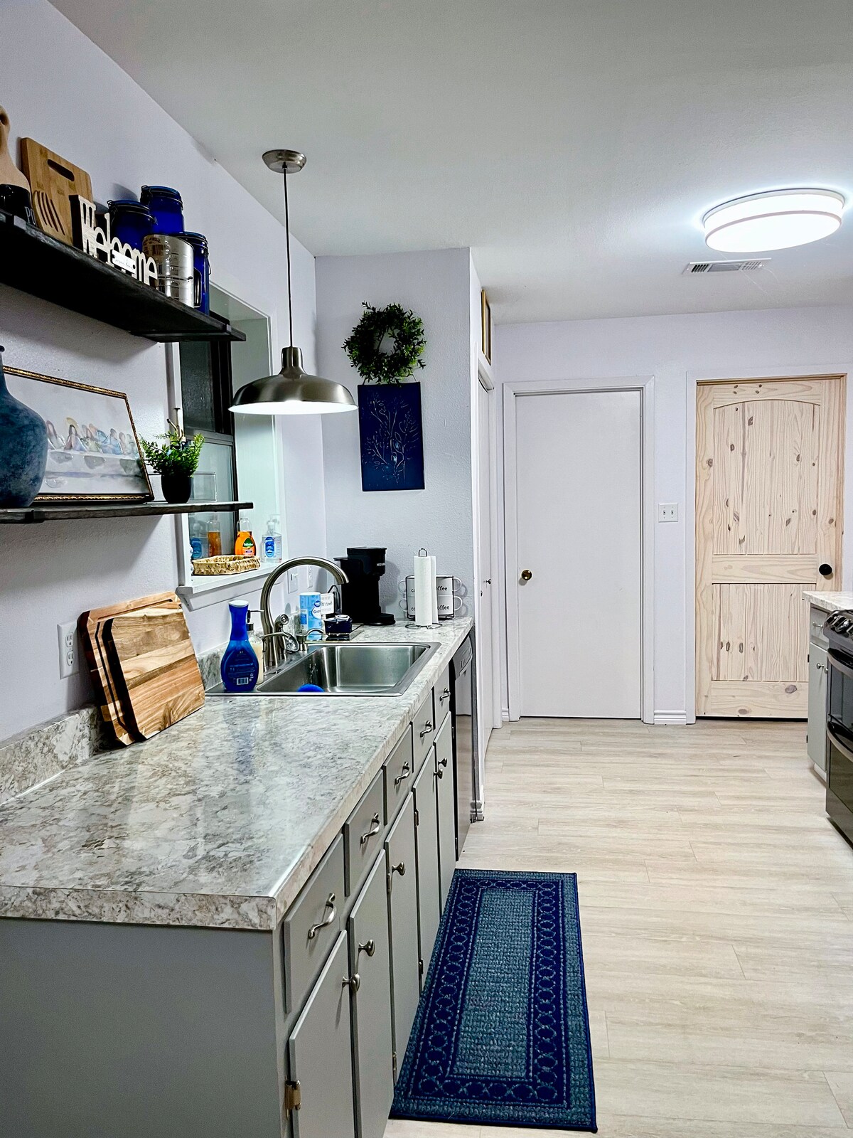Rumah Bersejarah ini telah direnovasi sepenuhnya. Ini adalah kehidupan pedesaan yang lebih tinggi. Keramahtamahan pedesaan terlihat di masing - masing tempat Unit B memiliki satu suite utama dengan tempat tidur berukuran king, lemari bar, dua meja rias mangkuk, shower walk - in, TV 55 ". Suite dua memiliki set tempat tidur queen, TV pintar, kamar mandi ubin. Kamar tidur #3 memiliki tempat tidur twin, smart TV , kamar mandi aula/area laundry, dapur lengkap, pulau, icemaker, area kerja/prasmanan, area makan, ruang tamu, pengawasan TV pintar 65"di luar, unit AC remote control...