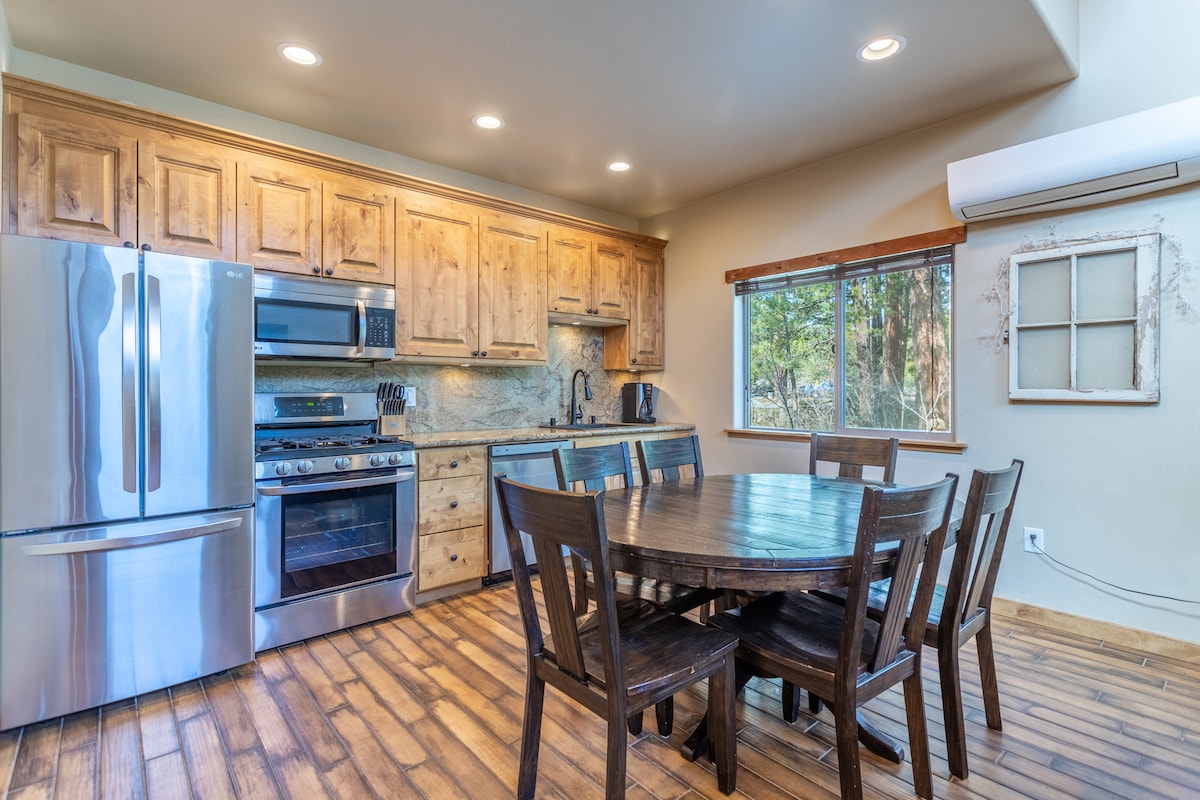 Berliburlah ke tempat peristirahatan tepi sungai seluas 2.000 kaki persegi yang hanya berjarak 9 mil dari Pintu Masuk Utara Lassen. Bersantai di dek 3 tingkat yang luas di atas Bailey Creek sepanjang tahun atau berkumpul di dekat perapian tepi perairan. Sangat cocok untuk rombongan beranggotakan 8 orang, kabin kami memiliki loteng bergaya desainer, dapur modern, dan kompor kayu yang nyaman. Siap Pakai Teknologi 2026: Starlink 300 Mbps untuk bekerja dari jarak jauh/streaming + Pengisi Daya Kendaraan Listrik Level 2. Berjalan kaki ke Danau Manzanita, jelajahi Air Terjun Burney, atau gunakan sepatu salju di musim dingin. Petualangan ramah hewan peliharaan berpadu dengan kenyamanan modern.