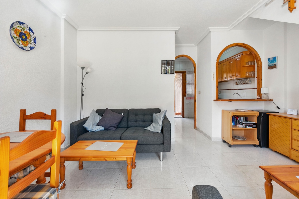 Lisensi turis: VT -85388 - A Jika Anda mencari bungalo super yang dekat dengan pantai & lapangan golf Costa Blanca yang indah, di area yang tenang & santai, dengan peralatan lengkap, kolam renang komunitas & teras atap yang sempurna untuk menikmati matahari sepanjang hari, kami mengundang Anda ke apartemen yang baru direnovasi di Torrevieja. CASA TORRE Y SOL adalah bungalo seluas 55 m2 yang indah dan modern yang bisa menampung hingga 6 orang. Tempat ini memiliki 2 kamar tidur, kamar mandi dengan pancuran, ruang tamu dengan dapur & teras besar.