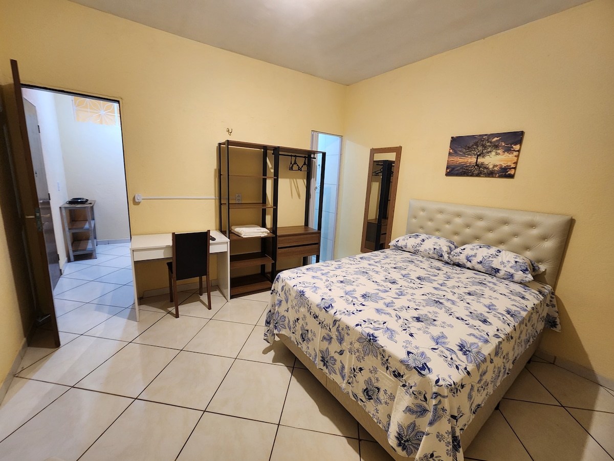 Compact and complete house in Maracanaú, perfect for rest or work. It offers 1 bedroom, integrated living room and equipped kitchen, bathroom, and outdoor area. Air conditioning, fast Wi-Fi, Smart TV, and garage (check availability). Quiet neighborhood, close to markets, pharmacies, and public transport. 1km from North Shopping. Easy access to Fortaleza. Ideal for couples or business trips. We accept monthly rentals for companies. No additional discounts offered. No pets allowed.