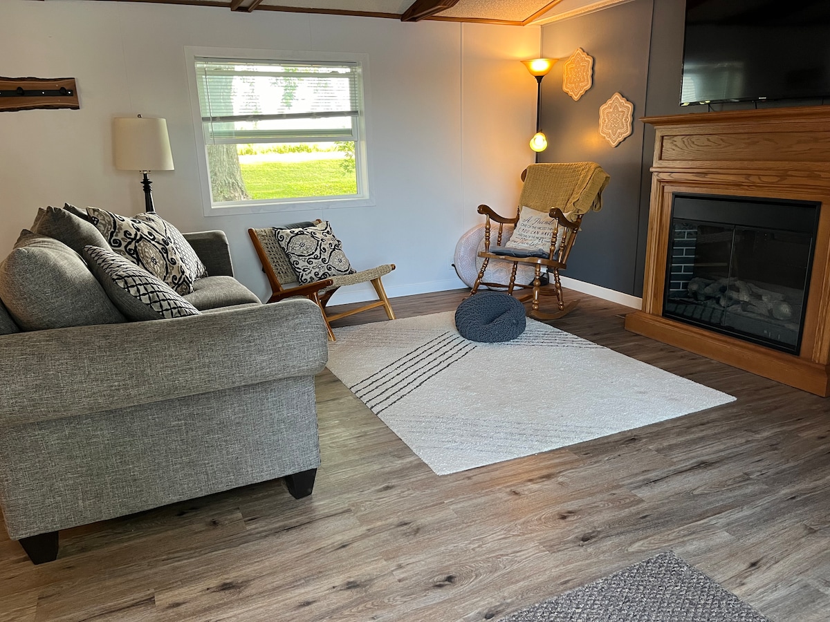 Enjoy a stay in the cottage in the big woods! The lane leading to it winds a half mile back from the road. This place will be a highlight because of everything from the spacious yard surrounded with woods, kitchen fully stocked with dishes, open, cozy living room and cute bedrooms. It is a family friendly place including a Foosball table, board games and toys. Also has a picnic table and backyard fire pit (firewood included) or you can choose to grill your favorites on the covered back porch.