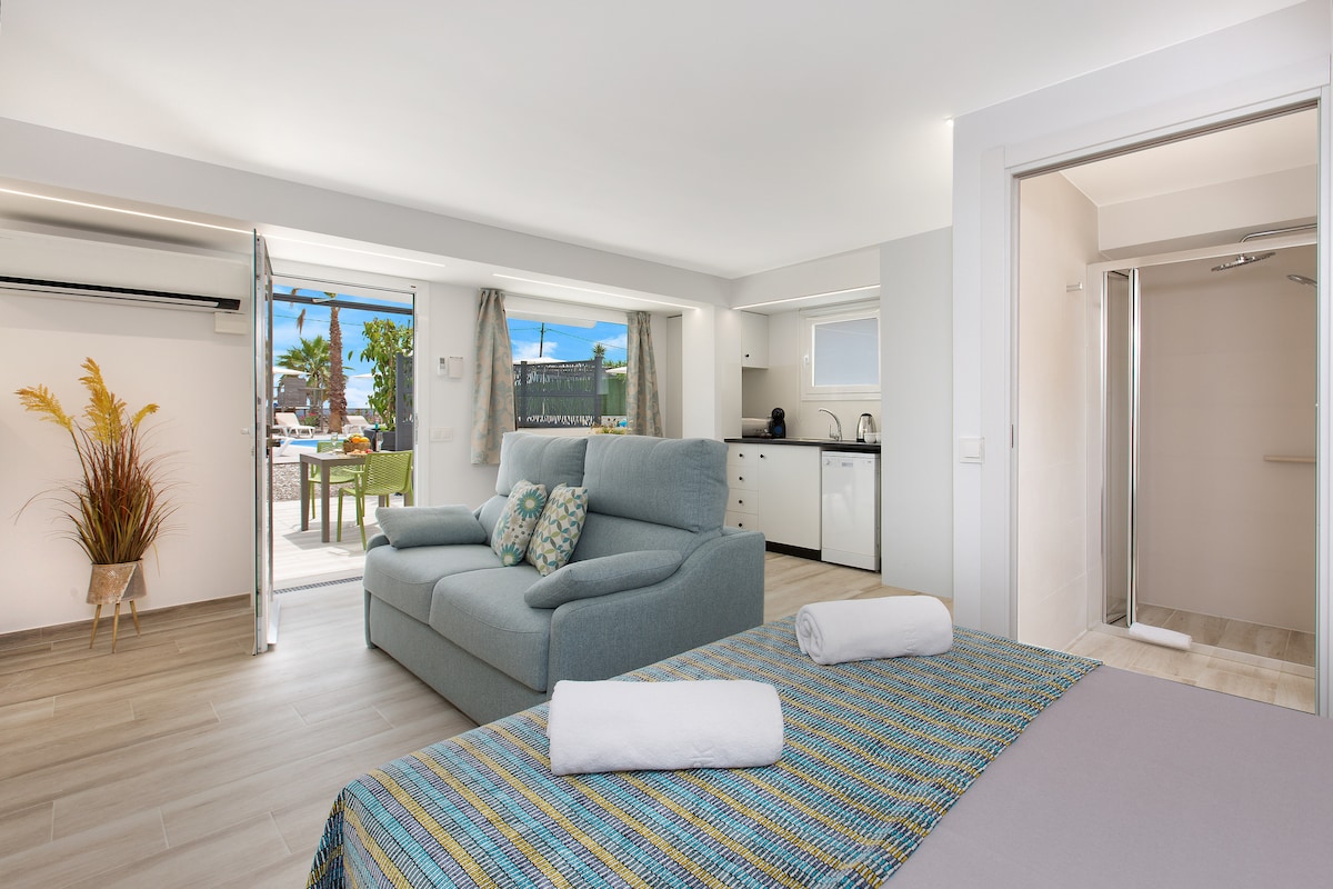 Studio 45 m2 dengan patio 6 mm berjalan kaki dari pantai.