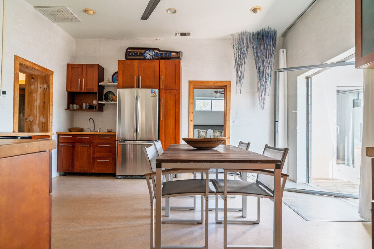 Terbuka dan lapang, rumah adobe 1925 yang telah direnovasi ini memiliki sentuhan Marfa yang unik. Tempat ideal untuk menjelajahi Marfa dan Big Bend atau tempat peristirahatan rumah gurun yang ideal. Tidur di tempat tidur berukuran king di kamar utama pribadi. Masuk ke kolam renang tangki kami, buka Mar-Nov. Ruang untuk keluarga, teman dekat, atau teman anjing terbaik Anda di area terbuka dan ruang tamu. Marfa Gaze adalah tempat peristirahatan kerja jarak jauh yang ideal dengan meja ukuran penuh dan internet serat. Pastikan Anda membaca deskripsi lengkapnya untuk memahami bagaimana rumah ditata.