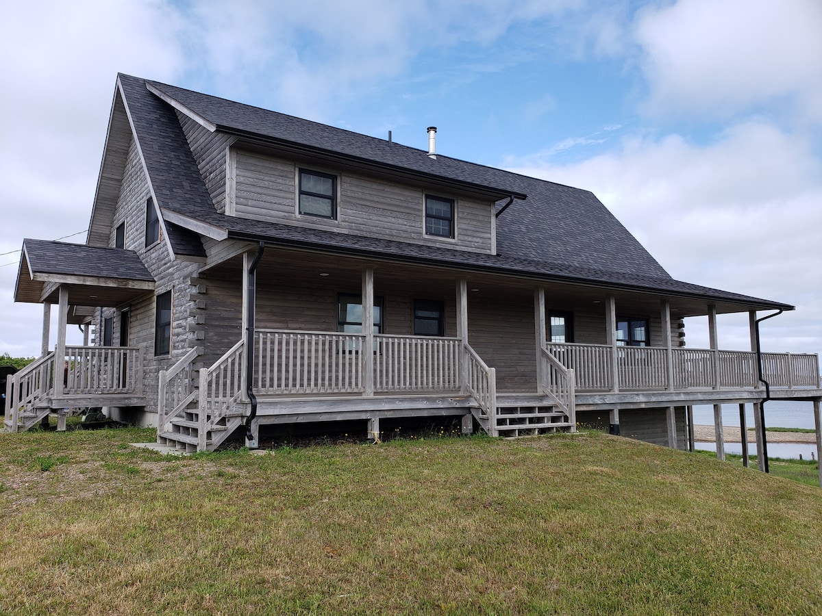 Over 4000 Sq/ft Log Home Modern Beach house with ultimate privacy. 50 acres on a sandy/pebble beach 10 mins from Cabot Cliffs Golf.. Voted #1 course in Canada 10 minutes from the World Famous Margaree River and Cabot Trail. Whale watch right off the deck or explore Bald Eagles, Moose, Deer and Seals from the panoramic views Un-obstructed Western exposure which makes every Sunset unique and spectacular Catch Sea Bass right off the shore or Speckled Trout in the pond Truly one of a kind!