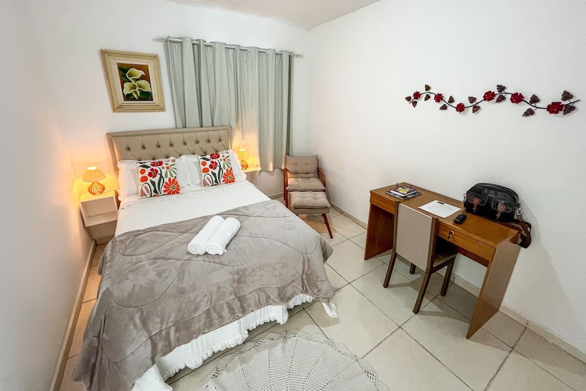 Relaxe com toda a família nesta acomodação tranquila. Um ambiente acolhedor em meio a natureza com ares famíliar. Ótima localização para quem vai participar de eventos no hotel vila Relicário E para quem quer desfrutar de toda beleza natural do parque municipal das Andorinhas