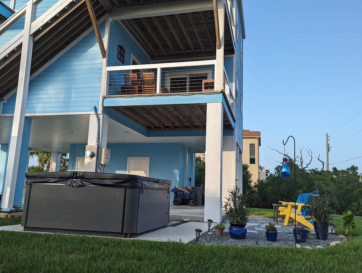 Skyfall adalah rumah 3 lantai dengan suite tamu pribadi di lantai 2 dengan pintu masuk terpisah dan check-in mandiri dengan tombol kunci. Dapur lengkap, 2 kamar tidur, 1 1/2 kamar mandi yang dirancang ulang secara profesional oleh "Natural Nest Home Stagers" sekarang dengan tampilan terbuka yang segar dan ruang tamu yang lebih nyaman. Di bagian garis pantai Florida yang jarang terjamah kurang dari 0,2 mil. berjalan kaki ke pantai pribadi & banyak aktivitas di dekatnya. Cocok untuk bersantai, liburan pantai yang menyenangkan atau melarikan diri dari cuaca dingin.