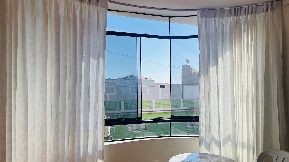 Nikmati masa inap Anda di pelabuhan Ilo di apartemen nyaman yang terletak hanya beberapa meter dari Plaza de Armas di pelabuhan Ilo. Anda akan menikmati kedekatan Glorieta tradisional, Muelle, Varadero municipal, dan di sekitar Anda akan menemukan restoran dari semua spesialisasi dan Anda akan menikmati Malecón kami di tepi Laut. ideal untuk wisatawan yang mencari kenyamanan, lokasi yang tak terkalahkan, dan pengalaman autentik di tepi laut.