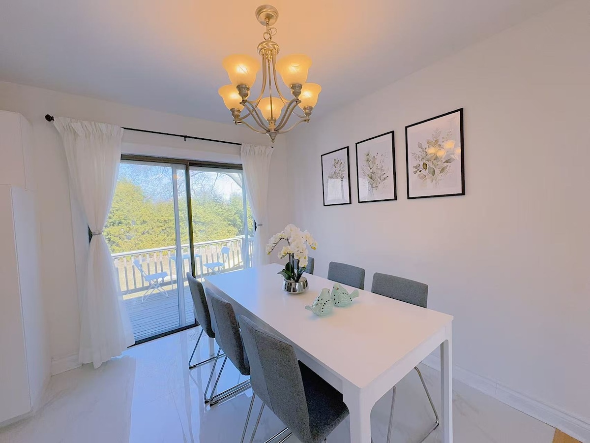 Direnovasi sepenuhnya, modern, cerah, mewah, dan luas ( lebih dari 1800 kaki persegi) 2 kamar tidur, langit - langit tinggi 2 kamar mandi di atas apartemen di atas tanah, pintu masuk terpisah, dan Patio untuk rumah nyaman Anda berikutnya yang jauh dari rumah! Nilai 5 bintang dan 5% rumah teratas di AirBnB! Pusat seperti di GTA. Anda akan dekat dengan Bandara Pearson, Highway 401/404/407, pusat perbelanjaan, toko kelontong, dan berbagai restoran trendi, bioskop, taman, dan jalur sepeda/ hiking di sekitarnya Pesan Dengan Percaya Diri!