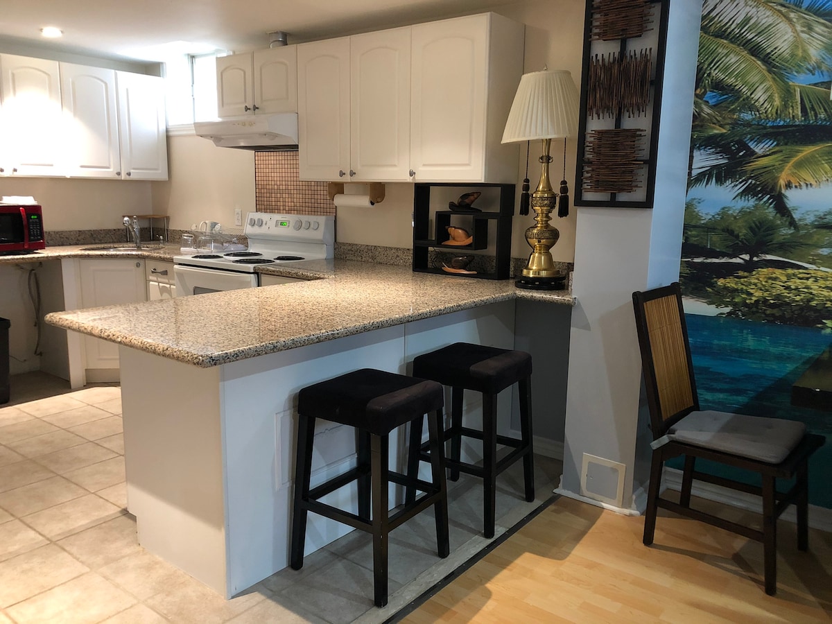 Selamat datang di ruang bawah tanah kami yang luas dan modern! Ideal untuk keluarga dan rombongan yang mengakomodasi hingga 10 tamu dengan nyaman. Fasilitas yang Akan Anda Sukai: Dapur berfasilitas lengkap Wi - Fi berkecepatan tinggi dan Smart TV Dua Tempat Parkir Gratis Ramah Keluarga Lokasi Utama: 20 Menit ke Canada's Wonderland 5 Menit ke Jalan Raya 404 & 407 Dekat Belanja & Bersantap Kami bangga menawarkan lingkungan yang bersih, aman, dan ramah bagi tamu kami. Pesan sekarang dan buat kenangan tak terlupakan di Richmond Hill!
