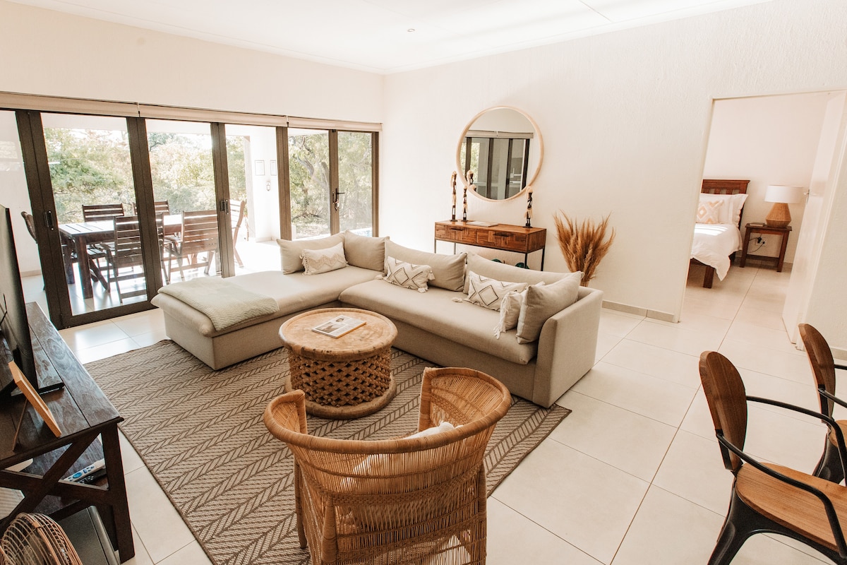 Sereti River Lodge adalah rumah katering mandiri mewah di Mjejane Private Game Reserve (Kruger NP). Terletak di sungai buaya yang masih asli, sempurna untuk menonton 5 pertandingan besar yang menakjubkan. Bangunlah untuk menyaksikan hewan memulai aktivitas di siang hari. Bersantai di dek Anda, berendam di kolam renang Anda dan nikmati braai/bbq di boma Anda di bawah langit malam berbintang Afrika yang magis. Tempat tidur maksimal 6 orang. Cleaner Mon - Sab. Harga termasuk Safari drive di dalam Mjejane dengan Pemandu & kendaraan pribadi. Harga tidak termasuk biaya taman.