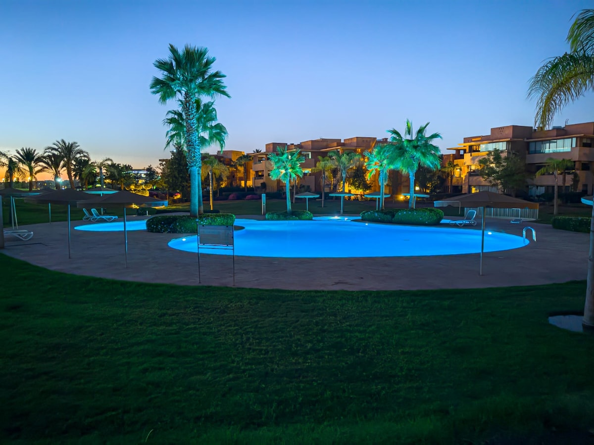 Apartemen baru di hunian golf dengan kolam renang besar di pusat Marrakech: Prestigia Golf city Saphir. Apartemen 2 kamar tidur yang indah ini memiliki pemandangan panorama Pegunungan Atlas, kolam renang yang indah dan golf Tempat tinggal ini memiliki 3 kolam renang serta area hijau yang luas untuk pecinta jalan-jalan dan lapangan golf. Beberapa meter (2 menit) berjalan kaki Anda akan menemukan clubhouse tempat tinggal: "Montgomerie" dengan 3 restoran. Wi-Fi Fiber Optik