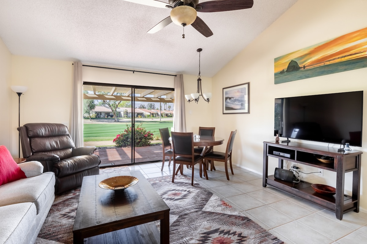 Selamat datang di tempat liburan manis Anda di Desert Falls Country Club 🌴 — kondominium lantai bawah 3BR/2.5BA yang menarik yang dirancang dengan kenyamanan modern. Habiskan hari Anda bersantai di tepi kolam renang, memanggang makan malam di patio saat matahari terbenam, lalu bersantai di spa sebelum bersantai di malam yang nyaman. Nikmati fasilitas tingkat resor dengan 25 kolam renang & spa, dan fasilitas kebugaran yang diperbarui dengan 10 lapangan tenis dan 8 lapangan pickleball. Pack n Play dan kursi makan bayi tersedia sesuai permintaan.