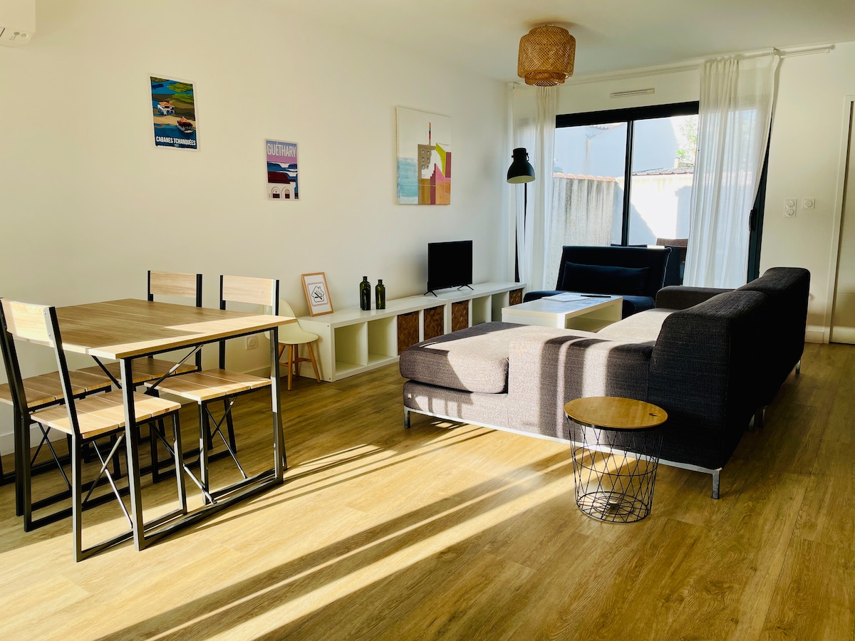 Détendez-vous dans ce logement de "prestige (60m²), calme, confortable, élégant et climatisé, pouvant accueillir 4 personnes. Cet appartement propose des équipements haute gamme, 2 chambres, literie de 160 et TV connectées. Doté d'une décoration soignée. Terrasse ombragée et jardin. "Parking privé" Situé dans un quartier résidentiel à 10 min du centre ville de La Rochelle, de l'aéroport, de l'île de Ré et à 150m d'un carrefour-city, boulangerie, transport en commun, cabinet médical et pharmacie.