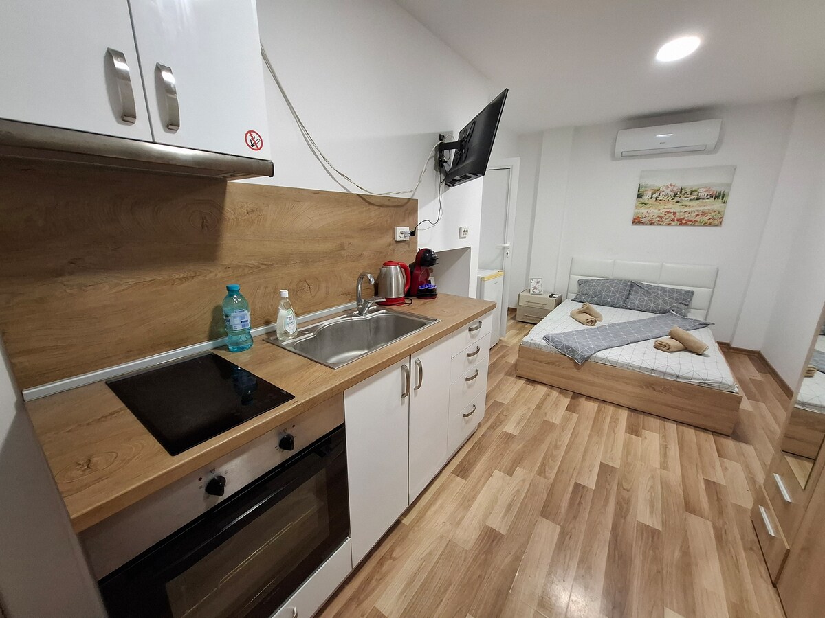 Ruse Charm is a boutique collection of modern studios, designed for travelers who seek both comfort and style. Bright, thoughtfully furnished, and perfect for shorter or longer stays, each studio offers a cozy retreat in the heart of the city. Step out to discover Ruse’s “Little Vienna” charm by the Danube, then return to your own quiet corner — simple, modern, and full of warmth.