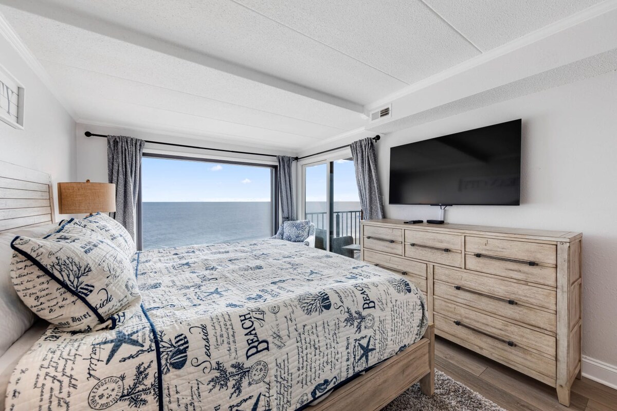 Beautifully renovated oceanfront condo with panoramic ocean views and direct beach access. Building indoor pool and hot tub are closed for a full HOA renovation and upgrade, scheduled to reopen in May 2026 and be refreshed and like new for the 2026 season. By booking, you acknowledge the pool and hot tub may be unavailable during your stay and agree no discounts or compensation will be provided for this closure unless confirmed in writing in advance of your reservation and booking.