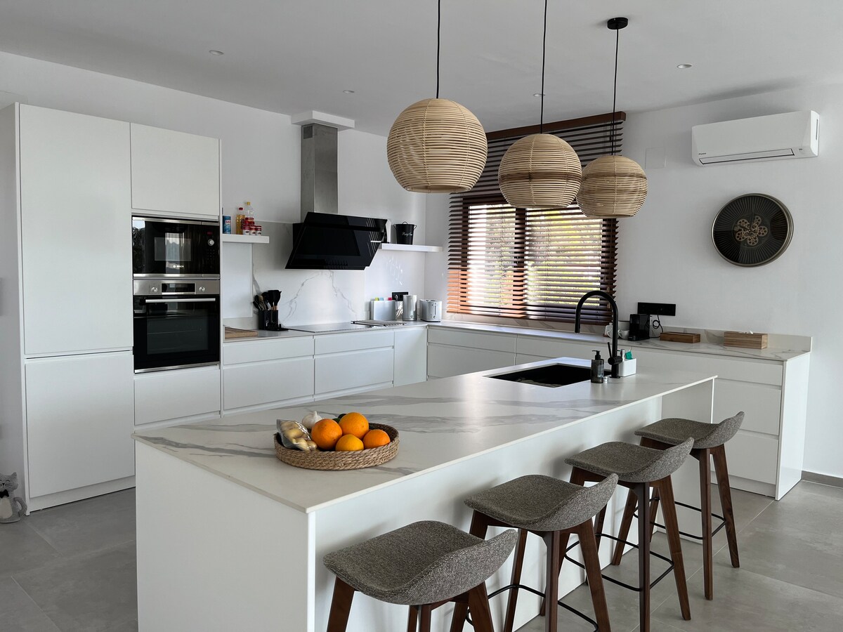 Villa garis depan bergaya dengan kolam renang infinity 17 meter, jacuzzi, sauna, dan teras dengan pemandangan laut 180° dan Peñón de Ifach yang ikonis — simbol Costa Blanca. Dalam 5 menit berjalan kaki: pantai berpasir, Marina Port Blanc (sewa perahu, jet ski, olahraga air), restoran (Oscar, Puerto Blanco, Maryvilla), dan lapangan tenis. Pada tahun 2026, pelabuhan ini akan dilengkapi dengan bar pantai dan restoran panorama. Pusat Calpe — 5 menit berkendara, Benidorm — 25 menit, Bandara Alicante — 55 menit, Valencia — 1 jam 20 menit.
