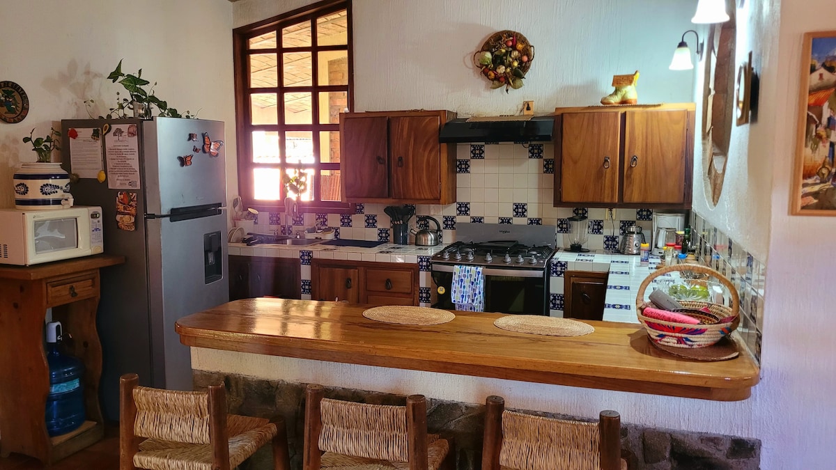 La casa está ubicada dentro del desarrollo Rancho La Esmeralda, a 7 minutos del Centro Histórico del Pueblo Mágico de Mascota. Es un lugar rodeado de un paisaje de montañas, arboles y pasto donde puedes gozar de completa tranquilidad y contacto con la naturaleza, además de un exelente clima. La casa cuenta con cocina bien equipada, terraza con asador, wifi gratis, TV Smart de 45" , muebles y colchones super confortables.