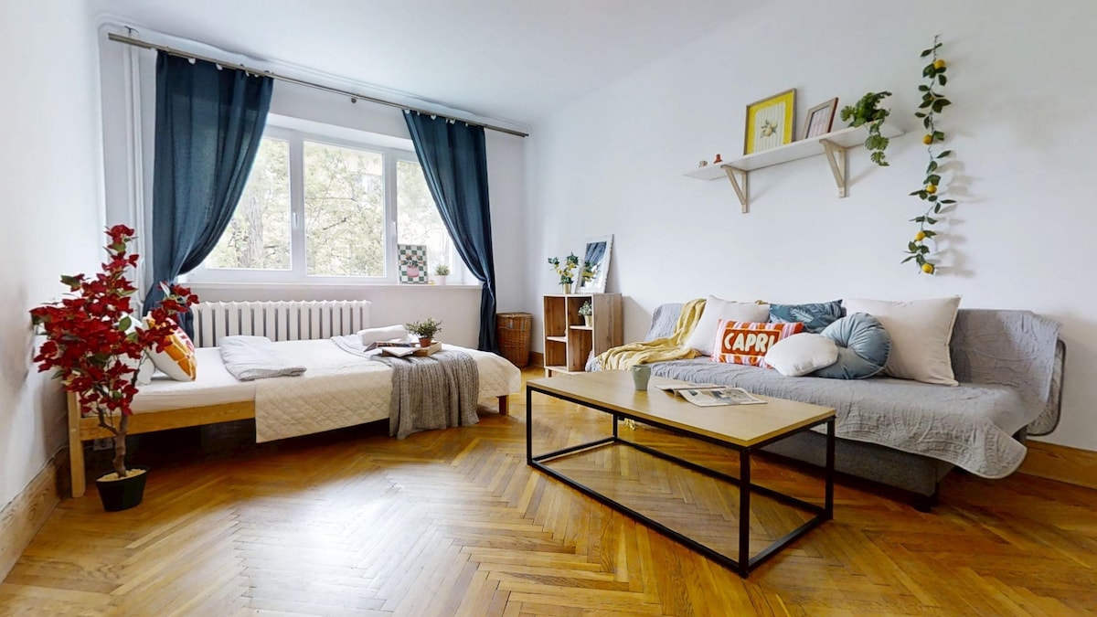 Apartemen ini terdiri dari kamar dengan dapur kecil, kamar tidur dan kamar mandi. Komunikasi yang baik dengan pusat kota (sekitar 12 menit dengan angkutan umum ke Stasiun Pusat), dekat dengan toko besar, ATM, kafe, restoran, dan banyak atraksi lainnya. Di dekatnya juga terdapat: Saxon Garden, Krakowskie Przedmieście, dan Old Town. Tempat saya cocok untuk pasangan, petualangan solo, petualang bisnis, pelawat bisnis, keluarga (anak), dan rombongan besar. Jika 2 orang ingin menggunakan 2 kamar tidur, harap pilih 3 tamu.
