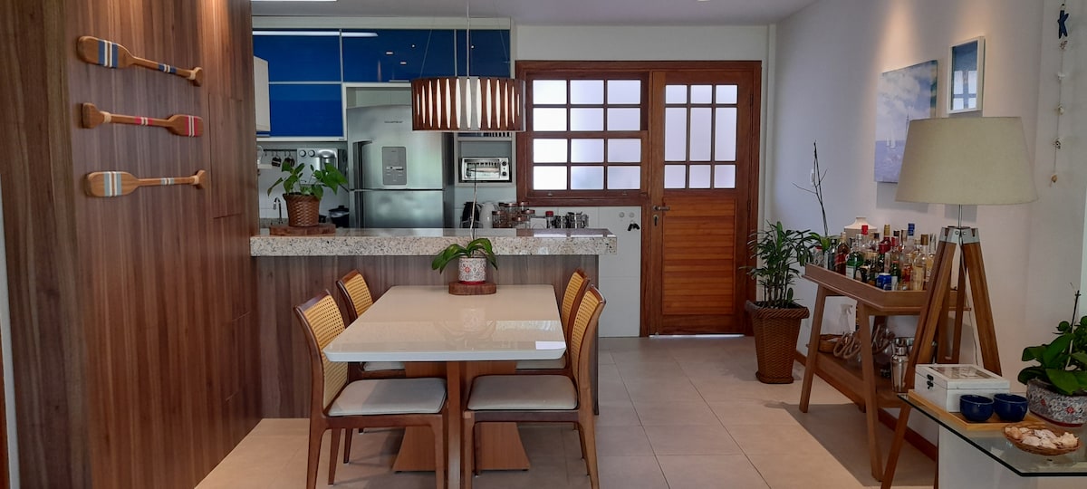 Anda akan menyukai tempat ini karena sangat nyaman, dengan dekorasi yang cermat, lokasi yang sangat baik, luas dan lengkap. Dengan taman, balkon, terletak di kondominium dengan keamanan dan tempat parkir. Tempat saya cocok untuk pasangan, keluarga, sekelompok teman, dan bahkan pelawat bisnis (kami memiliki Wi - Fi). Anda akan memiliki akses langsung ke pantai (laut hanya berjarak 300 mts dari desa) dan akses eksklusif lainnya ke desa (hanya 150mts dari pintu rumah). Supermarketnya persis di sebelah.