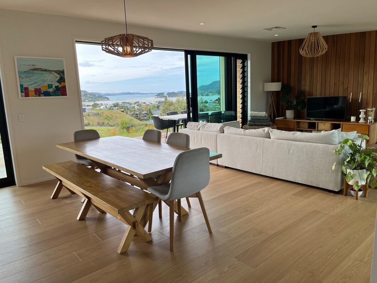 5 Menit berkendara ke kota, dan pantai berenang. Rumah baru yang dirancang secara arsitektur ini terletak di lokasi yang damai. Bangunlah mendengar suara Tui, dan Bellbirds. Dek Besar mengelilingi tiga sisi rumah. Boat ramps nearby, Long Bay, Coromandel boat ramp (short drive away.) Banyak tempat parkir. Banyak jalan kaki di dekatnya, Kauri Track, jalur Harray. Jelajahi kota pertambangan Emas tua Coromandel. Memancing, Berkayak, jalur kereta api sungai yang terkenal. Lapangan Golf Nine hole di dekatnya.