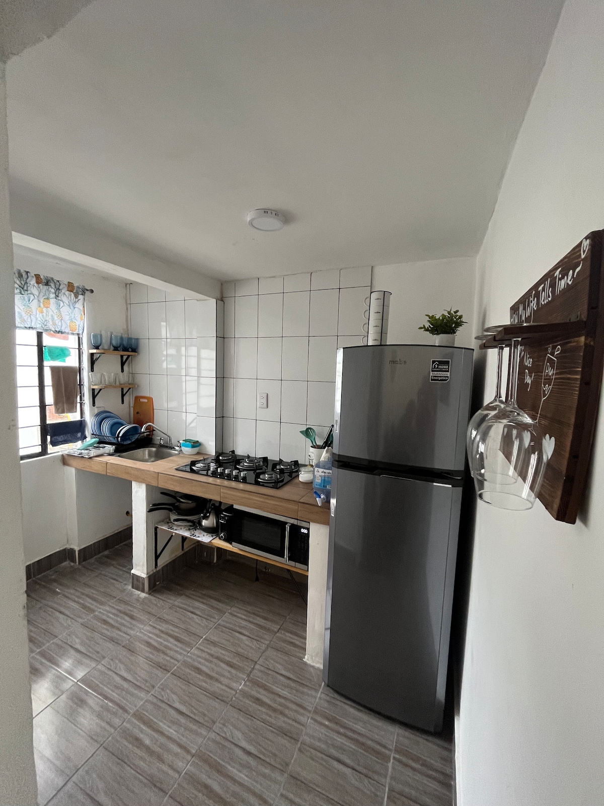 Departamento moderno en Ciudad Valles, ideal para hasta 4 personas. Cuenta con dos baños completos con agua caliente y recámara privada con dos camas, aire acondicionado, ventilador y Smart TV. El área social integra cocina, sala y comedor. Diseño minimalista. Incluye WiFi, estacionamiento privado y cocina equipada con estufa de inducción, refrigerador y microondas. Un espacio cómodo y funcional para disfrutar la Huasteca Potosina o la ciudad, ya sea por descanso o trabajo.