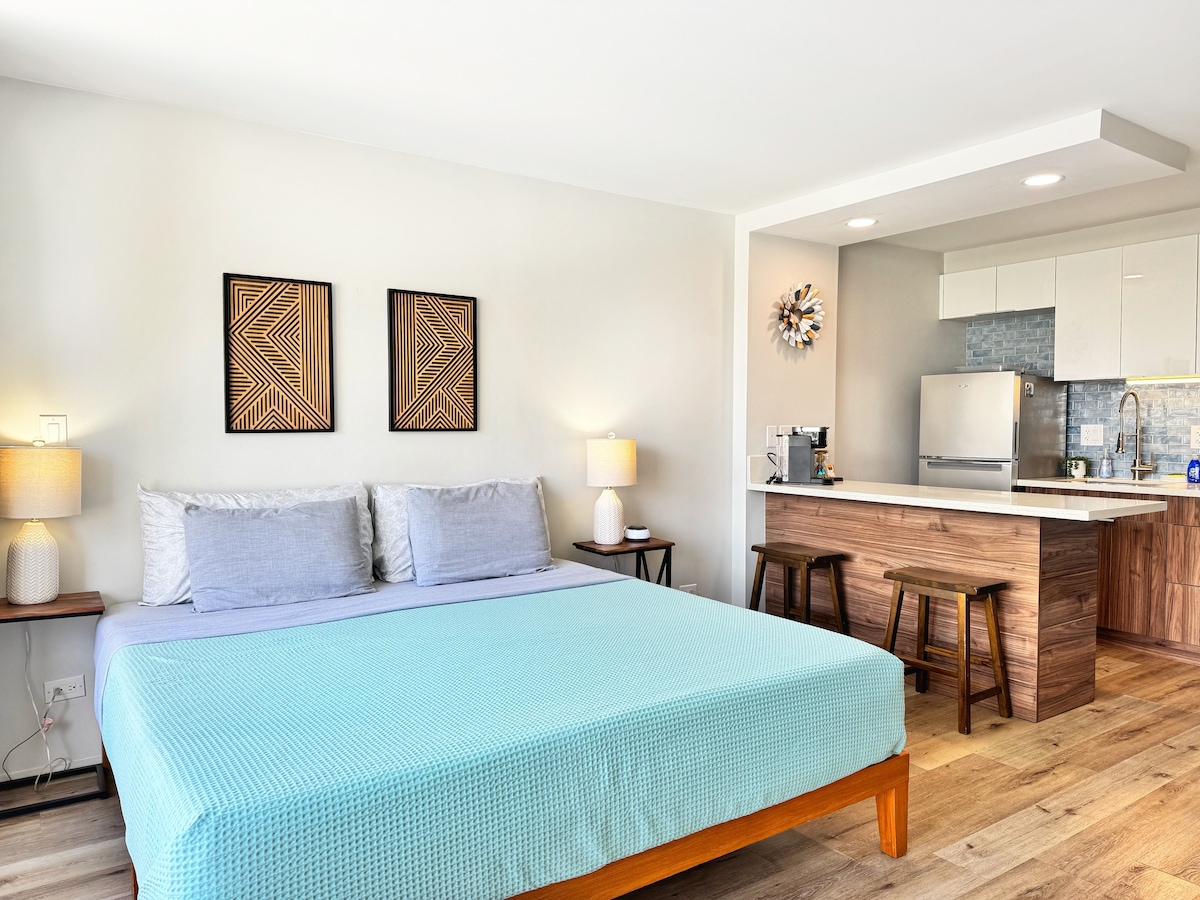 Honu Suite adalah tempat peristirahatan yang tenang dan desainnya maju di pusat Waikiki - hanya satu blok dari pantai. Nikmati pemandangan Diamond Head dan laut yang indah dari lantai 33, fasilitas yang dipilih, dan sentuhan bintang lima di seluruh tempat. Berakar pada warisan Hawaii, tempat ini sangat cocok untuk pasangan yang mencari kenyamanan, gaya, dan rasa melarikan diri. Waktu terbatas: Check-in lebih awal dan check-out terlambat gratis, tergantung ketersediaan.