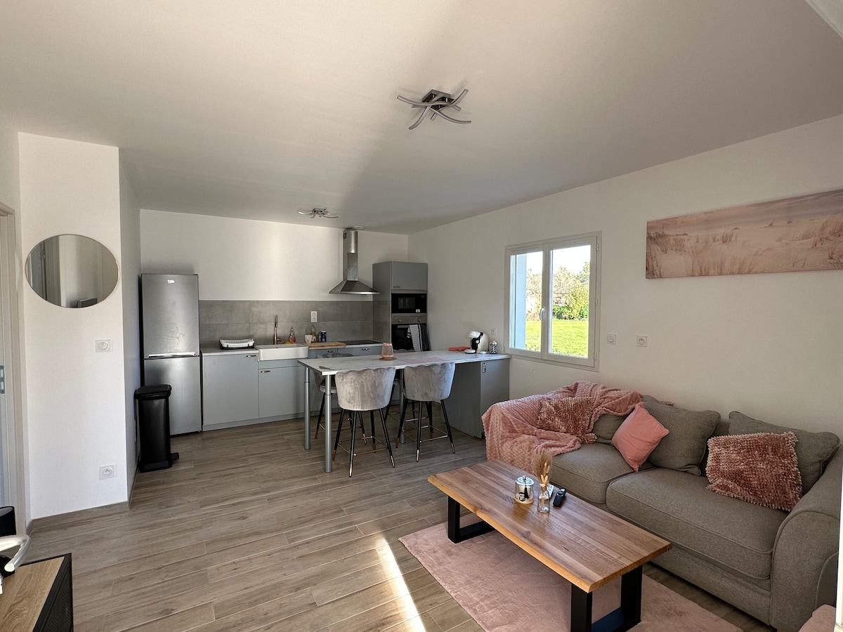 Apartemen terletak di lantai dasar rumah utama kami, di subdivisi yang tenang. Sangat cocok untuk masa inap yang menenangkan atau profesional. Nikmati ruang tamu yang nyaman, dapur lengkap, kamar tidur yang nyaman dengan TV yang terhubung. Anda juga memiliki area luar ruangan pribadi. Dekat dengan pertokoan dan transportasi, di area yang tenang. WiFi, AC reversibel, dan check-in mandiri disertakan. Seprai disediakan (seprai, handuk). Parkir gratis dan mudah.