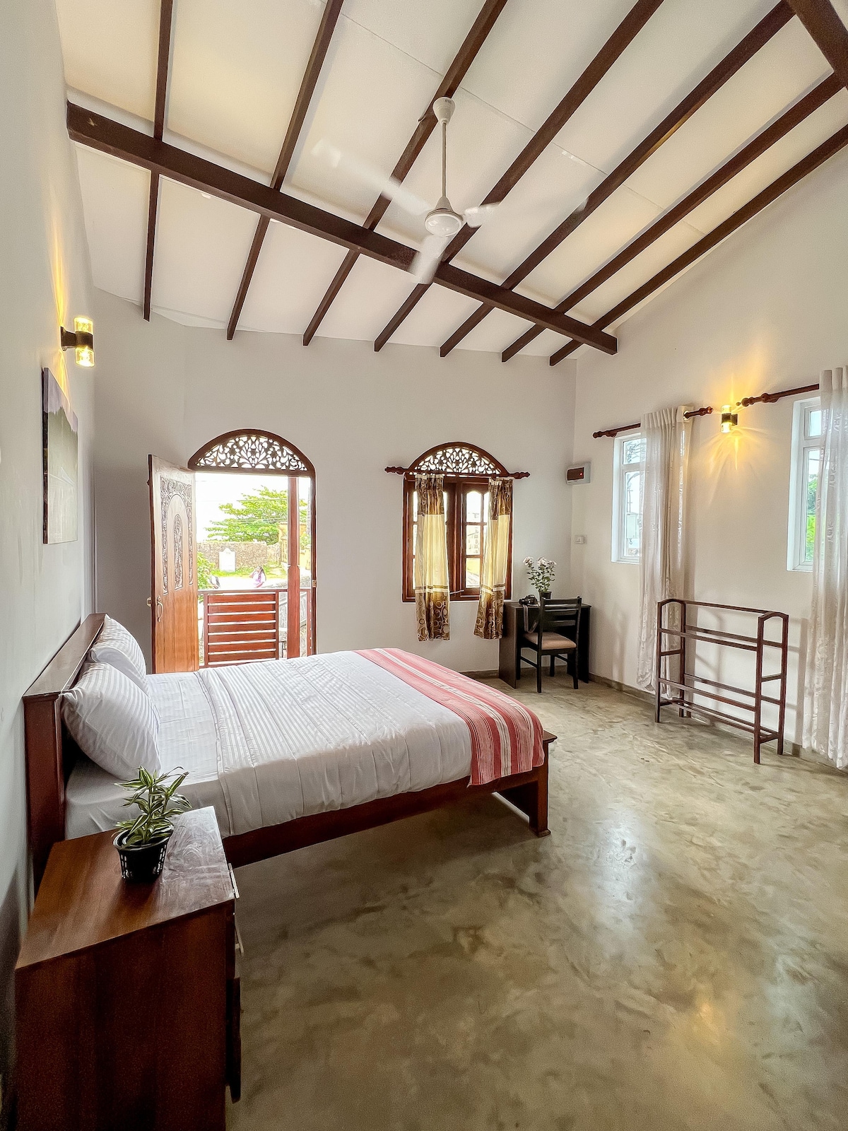 Berliburlah ke rumah menakjubkan ini dengan perabotan antik yang elegan, yang menampilkan lantai Lantai Lantai yang sejuk, langit - langit kayu, dan detail antik yang rumit untuk suasana yang mewah dan menawan. Bersantai di halaman belakang dengan sawah, taman yang rimbun, dan kolam renang infinity yang menawarkan pemandangan menakjubkan. Terletak di Distrik Galle yang damai, dekat Thalpe, Pantai Unawatuna, dan Habaraduwa Tengah. Meskipun hanya berkendara sebentar dari toko dan restoran, area ini terasa terpencil, menawarkan tempat peristirahatan yang tenang.
