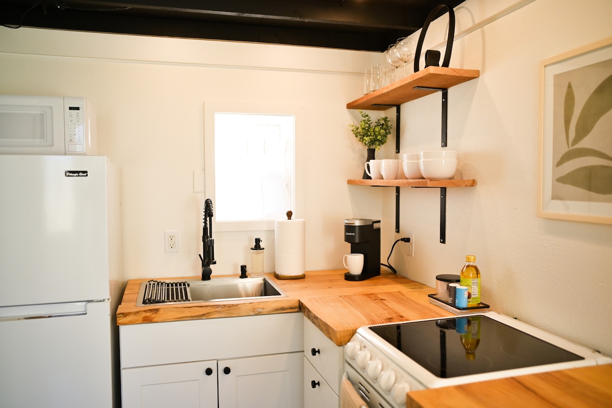 Fern Cottage is on rear of our property with private entrance & outdoor spaces which include seating, fire pit. Front porch has a swing. It is fully furnished There is an under counter fridge in the kitchen and full size fridge located outside your bedroom door in garage. Off street parking provided. NO smoking unit. No exceptions. No more than 2 pets and no larger than 50 pounds. NO AGGRESSIVE PETS. There is a $25 pet fee please be courteous and pay when reserving
