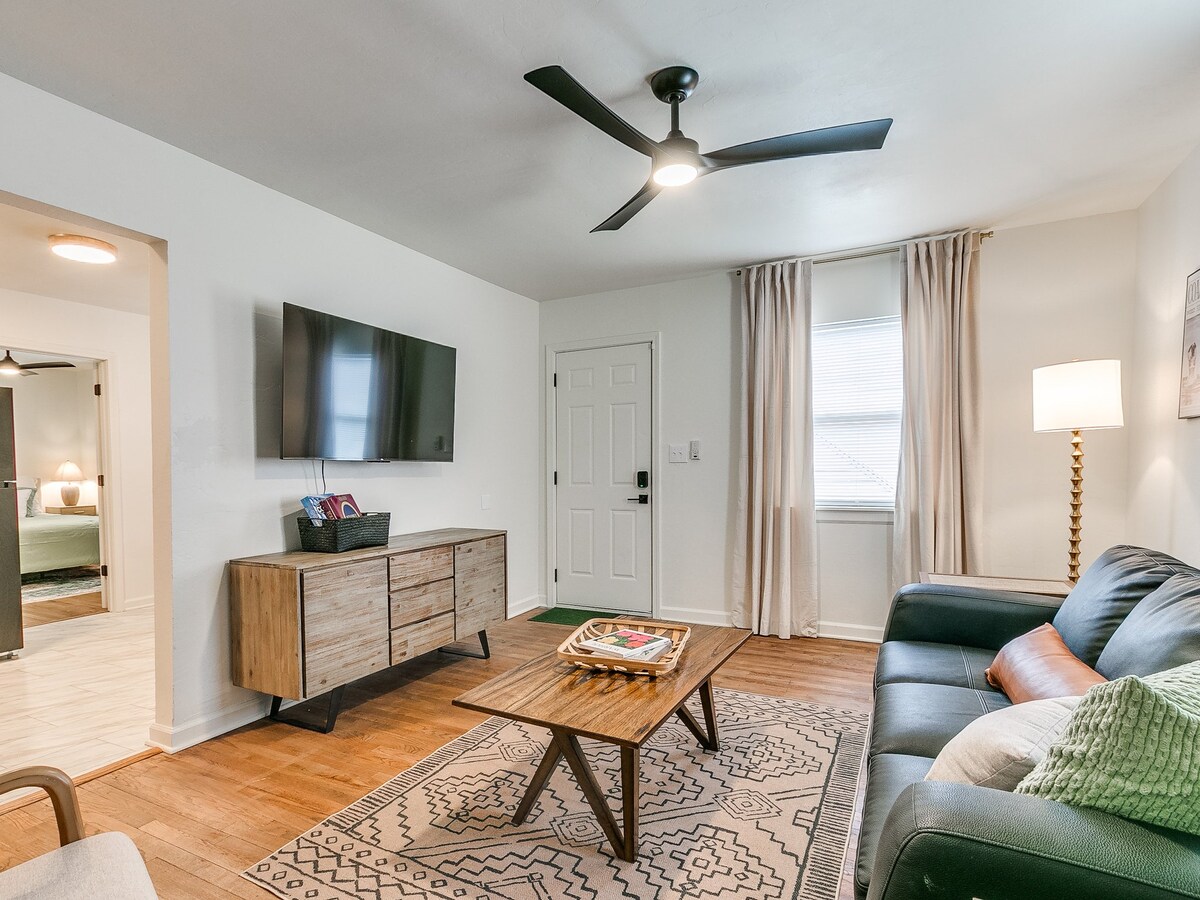 Dirombak sepenuhnya, hanya di bawah satu hektar dengan halaman belakang berpagar penuh. Terletak di atas jembatan 1 mil dari Purcell dengan akses langsung ke I-35 dan akses hwy ke U of O. Rumah menyediakan 2 tempat tidur king size dengan tirai gelap untuk tidur nyenyak. Ada smart tv 75” untuk hari permainan atau acara favorit Anda, lingkungan tinggal yang sangat aman. - Halaman belakang berpagar lengkap - Internet fiber hingga 500 kb/dtk - Area duduk di halaman belakang dengan lubang api (periksa larangan pembakaran di daerah Cleveland sebelum menyalakan api) - Masuk tanpa kunci dengan keypad