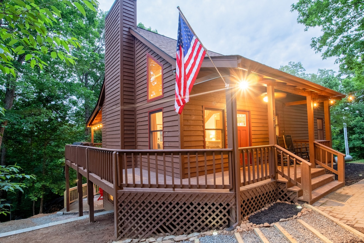 ⭐ Top 1% of Airbnb Homes “One of the best Airbnbs I’ve ever stayed in—and THE nicest in Blue Ridge.” – Scott Wake up to the sound of rushing water. Sip coffee on a swing just feet from the river. End your nights around a fire with the mountains wrapped in silence. TROUT "N" ABOUT is a premier RIVERFRONT CABIN DIRECTLY ON THE TOCCOA RIVER, designed for guests who want both PEACEFUL SECLUSION and UPSCALE COMFORT—just 8.5 MILES FROM DOWNTOWN BLUE RIDGE, with ALL PAVED ACCESS.
