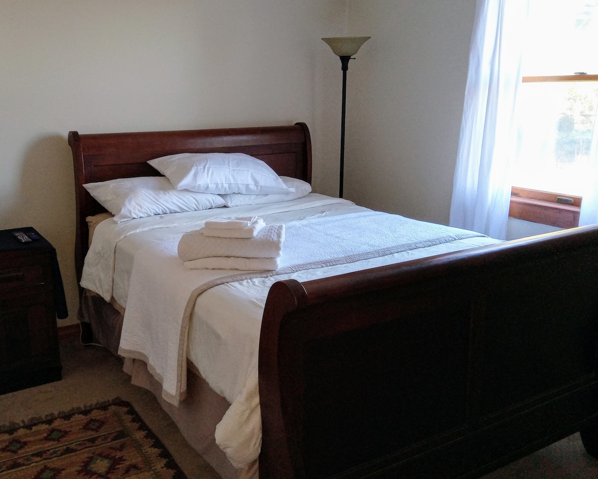 Lokasi pribadi yang indah di puncak Ithaca Falls. Kamar tidur dengan tempat tidur queen untuk 2 orang, sofa yang bisa tidur 1, kamar mandi pribadi, dan ruang tamu. Tidak ada dapur atau ruang makan, tetapi ada meja makan kecil, dua kursi, microwave, pembuat kopi dengan kopi, filter, peralatan makan sekali pakai, pemanggang roti, dan kulkas mini (di lemari). Berjarak 5 menit berkendara ke pusat kota Ithaca dan Cornell University. Ithaca dapat dengan mudah dijangkau dengan mobil, sepeda, bus, atau berjalan kaki.