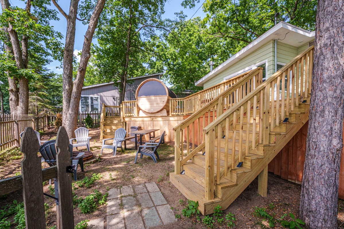 Bangunlah dengan kilauan Round Lake, gemerisik lembut hutan, dan panggilan burung-burung di seberang air. Nikmati kopi pagi Anda di dek atau berjalan-jalan ke rumah perahu. Sore hari berlalu dengan berenang cepat atau meluncur lembut melintasi perairan tenang di kayak kami. Malam hari membawa makan malam panggang, cerita di tepi perapian, gema tawa, dan berendam di bak mandi air panas di bawah kanopi bintang. Di sini, waktu melambat dan kenangan bersama keluarga dan teman semakin mendalam. Pesan penginapan Anda dan terhubung kembali di danau!