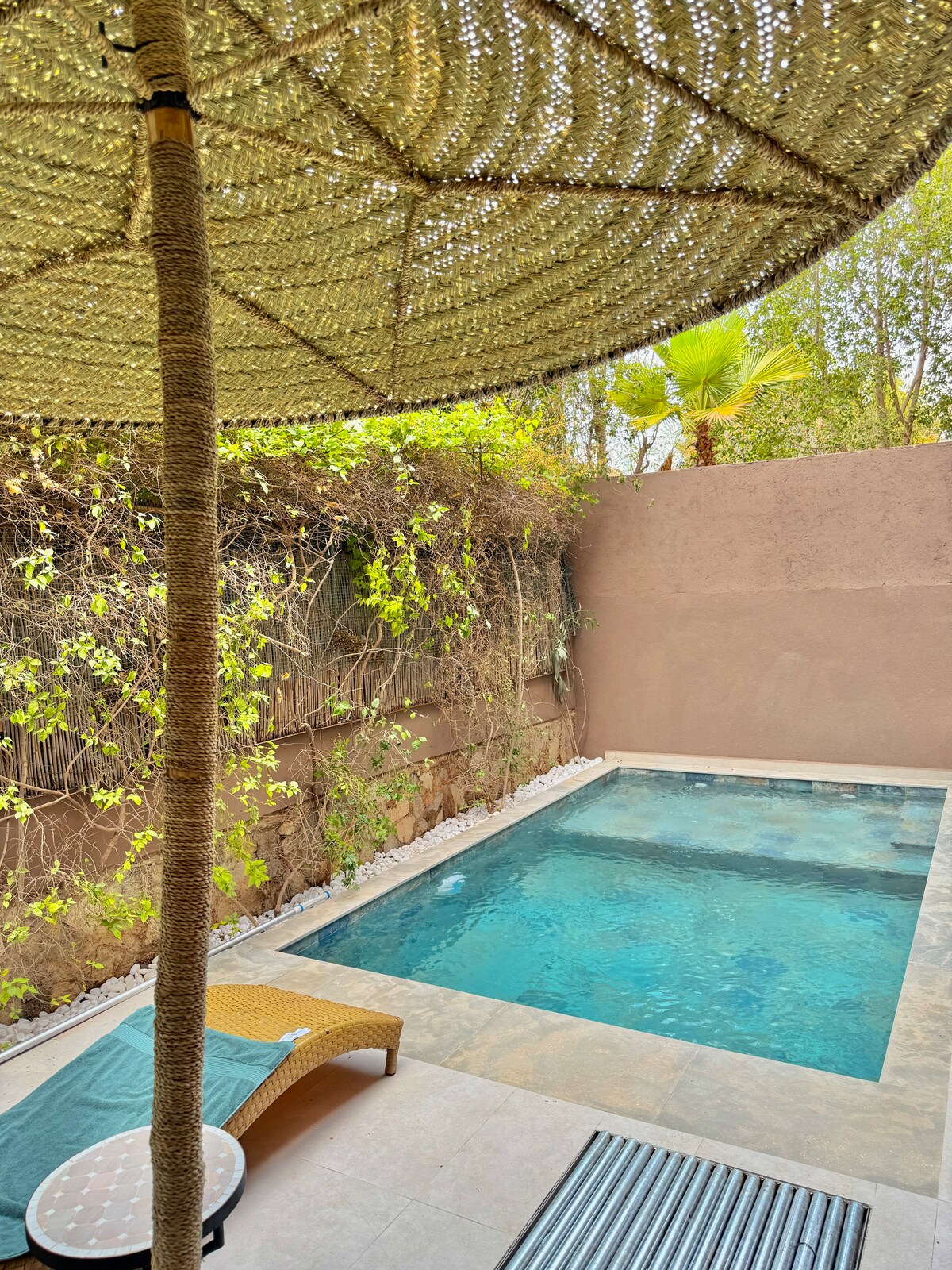 Exceptional villa in the Palmeraie with private swimming pool 💦 | Stove available 👩🍳 | On-site team ready to meet all your needs 🌴 – Just 5 minutes from the center of Marrakech 🕌 Experience the exception just a few minutes from the medina as a couple or with friends.✨ Want to experience a dream break in Marrakech, in a luxurious, intimate setting and without the constraints of a hotel?