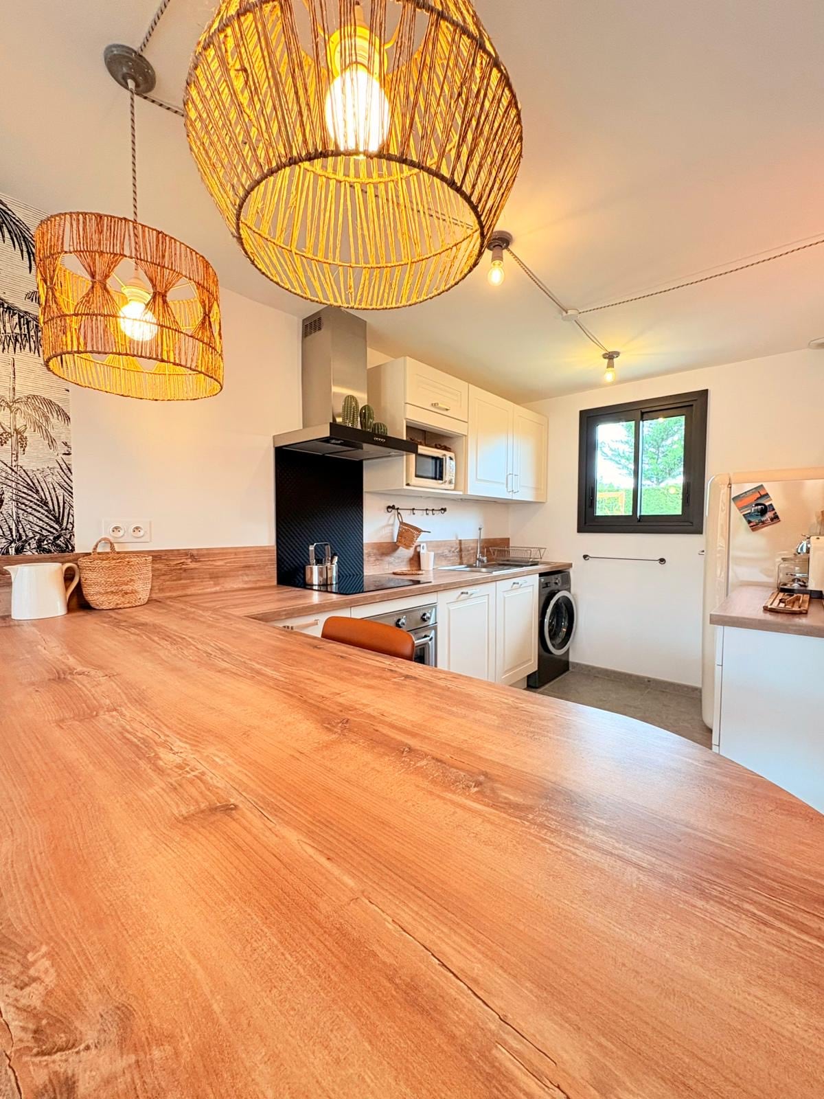 Bersantai di rumah yang tenang dan bergaya ini. Rumah baru yang bagus berlokasi di pedesaan di Medis 10 menit dari Royan . Rumah seluas 47 m2 ber - AC untuk 4 orang, termasuk: 1 ruang tamu dengan 1 clack (140), area dapur, kompor induksi 2 kebakaran, range hood, oven microwave gabungan, kulkas/freezer, mesin cuci, mesin cuci, TV, kamar mandi, toilet terpisah. Mezzanine dengan tempat tidur 140. BZ 140. Kemungkinan untuk meletakkan tempat tidur bayi. Tersedia: perabotan taman, barbekyu, 2 kursi dek, ruang mobil.