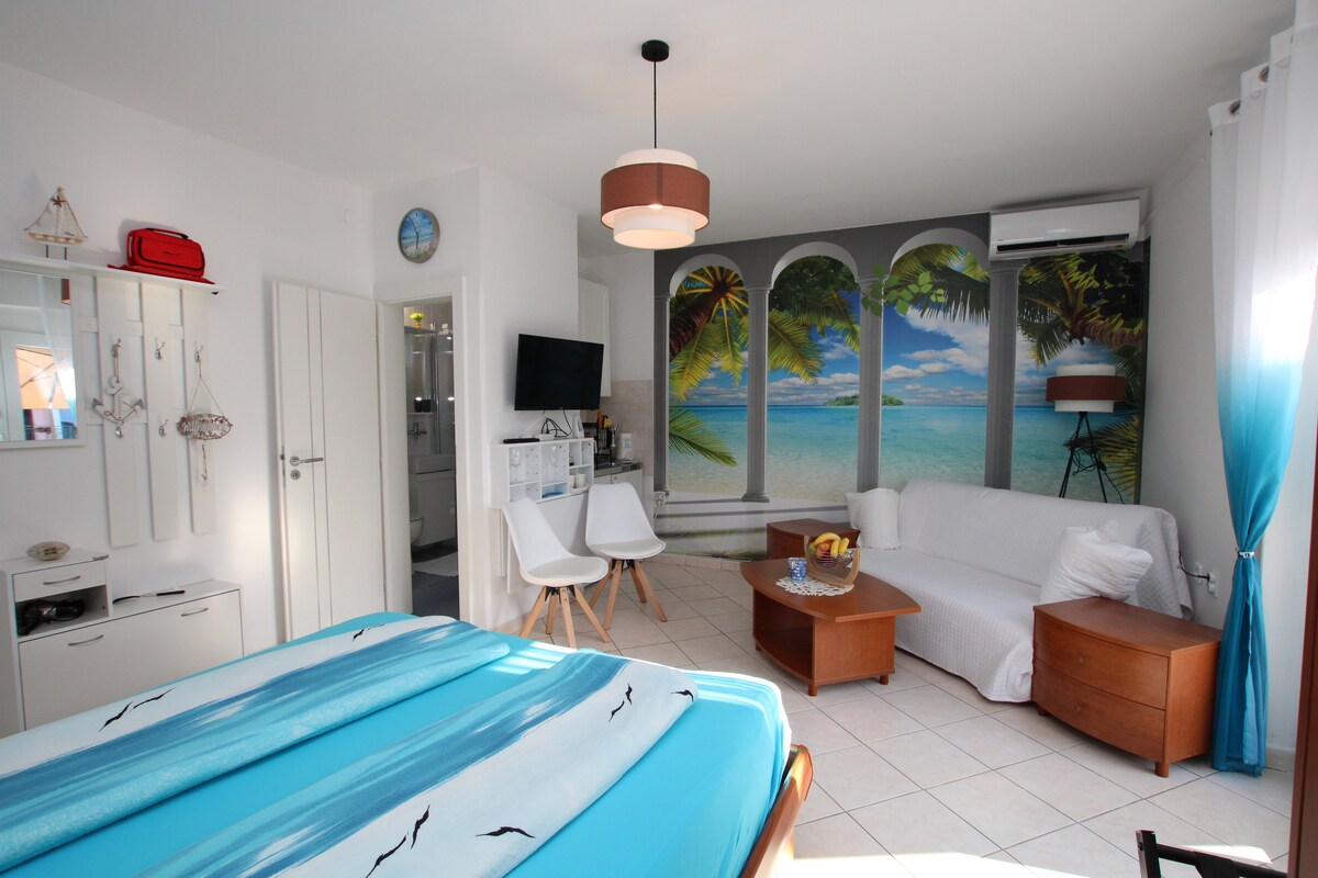 "Apartemen Lavanda - Apartemen studio seluas 25m² yang nyaman di tepi laut, ideal untuk liburan" Terletak hanya 500 meter dari laut yang jern, apartemen studio Lavanda menawarkan perpaduan sempurna antara kenyamanan, kedamaian, dan suasana Mediterania. Di ruang 25m² yang modern, apartemen ini menawarkan: Tempat tidur double Ruang tamu yang luas dengan sofa yang dapat diperpanjang Dapur dan ruang makan lengkap Kamar mandi dengan shower Teras dengan pemandangan laut Sangat cocok untuk pasangan, keluarga, dan semua orang yang menginginkan liburan yang tenang di tepi laut. Alamat: Barbariga 11, Vodnjan