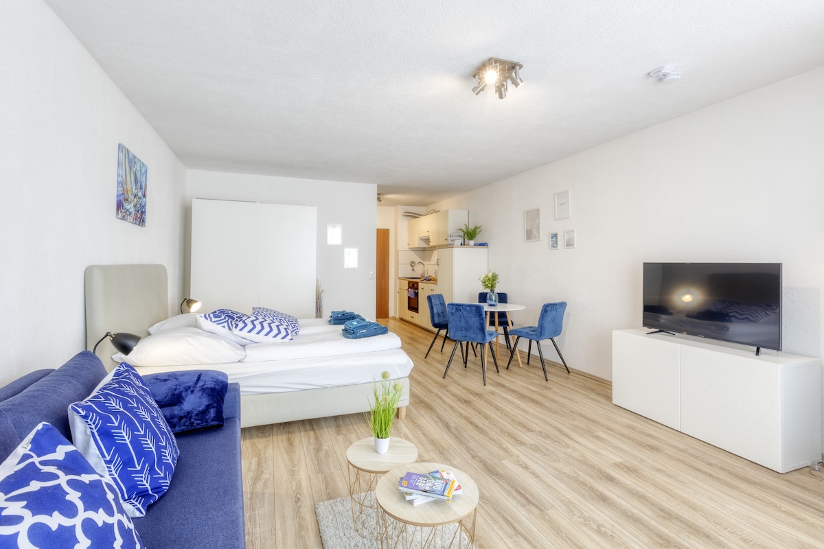 Selamat datang di apartemen kami yang menawan! Akomodasi ini bisa menampung hingga 6 orang dan memiliki 2 kamar tidur serta sofa bed. Nikmati taman kecil Anda sendiri dan lokasi yang ideal – hanya 4 menit berjalan kaki dari Danau Constance. Apartemen ini dilengkapi dengan smart TV di ruang tamu dan di kedua kamar tidur, dapur, dan mesin cuci. Sangat cocok untuk orang yang mencari kenyamanan dan kemudahan! Pusat kebugaran di dekatnya dapat digunakan secara gratis.