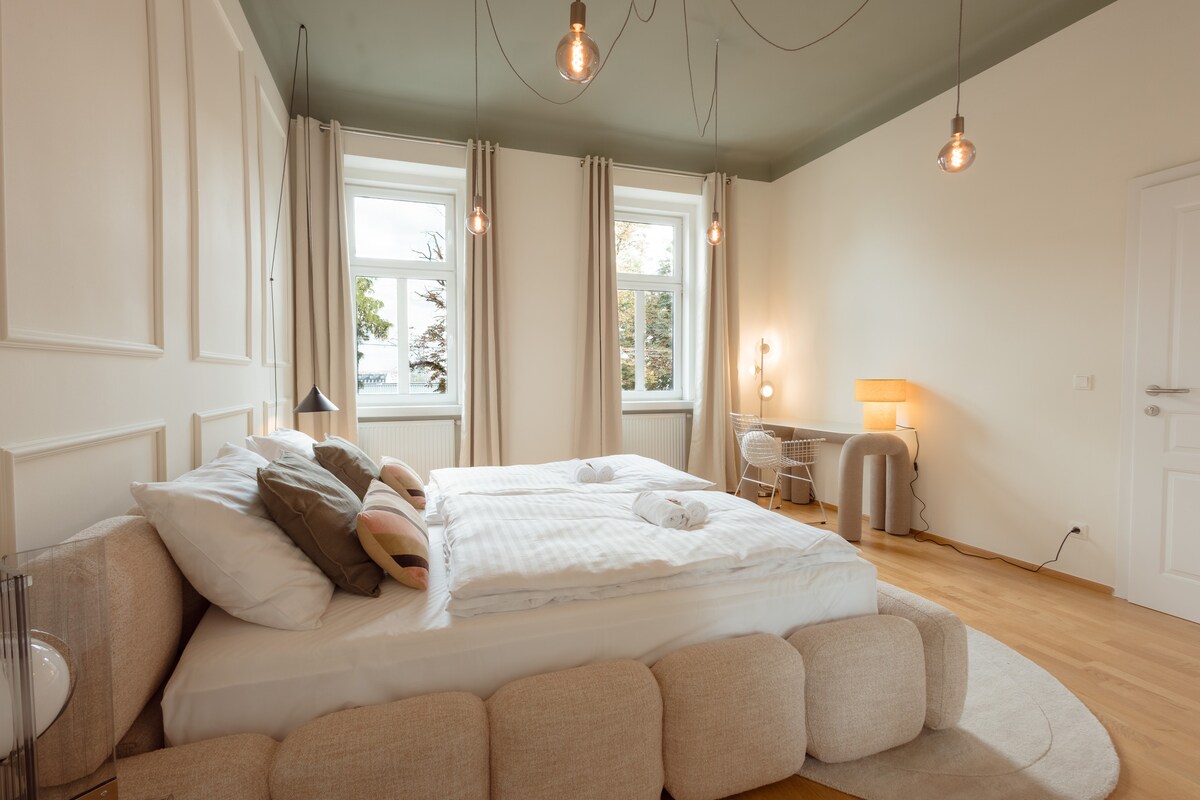 Rasakan kemewahan perkotaan yang halus di penthouse desainer baru ini di sebelah Mariahilfer Straße & Westbahnhof. Berada di dua lantai, apartemen ini memiliki furnitur desainer pilihan, teras pribadi seluas 22 m2, ruang kerja khusus, lemari pakaian walk-in, dua toilet, dan kamar mandi lengkap dengan bak mandi dan shower walk-in. Dua tempat tidur premium bisa menampung hingga empat tamu. Terhubung dengan sempurna untuk berbelanja, bisnis, dan kehidupan kota. Liburan mewah sejati Anda di pusat kota Wina.