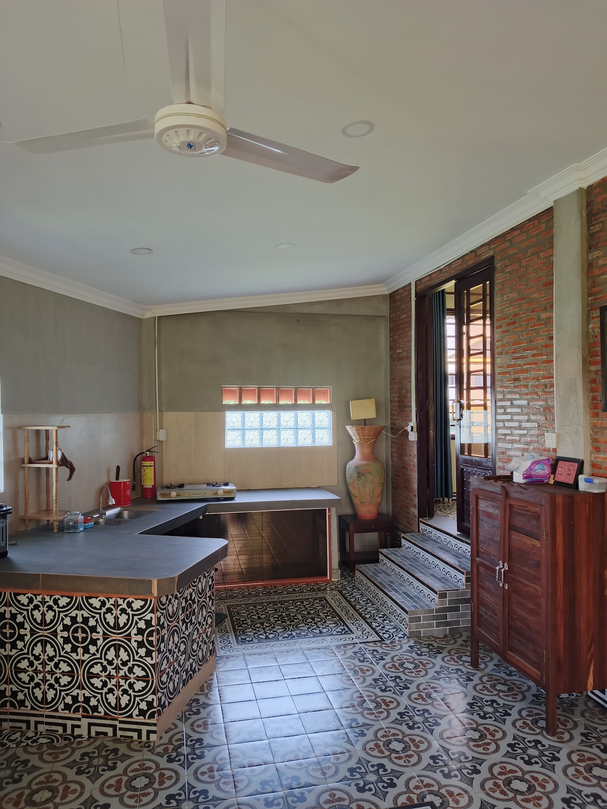 Homestay yang luas, nyaman, dan terhubung dengan alam. Ruang untuk bersantai atau melakukan apa pun yang menyehatkan pikiran dan tubuh Anda. Apartemen berada di lantai 2, dilengkapi dengan ruang tamu besar, kamar tidur, kamar zen (bisa menjadi kamar tidur ke-2 jika Anda memesan dari 3-4 tamu), dapur, kamar mandi luas dengan bak mandi dalam ruangan dan pancuran luar ruangan, balkon pemandangan sungai besar. CATATAN: - Jika memesan 1 -2 tamu: 1 tempat tidur - Jika memesan 3 -4 tamu: 2 tempat tidur - Jika memesan 1 -2 tamu tetapi membutuhkan 2 tempat tidur: harga ekstra adalah 250.000vnd/malam