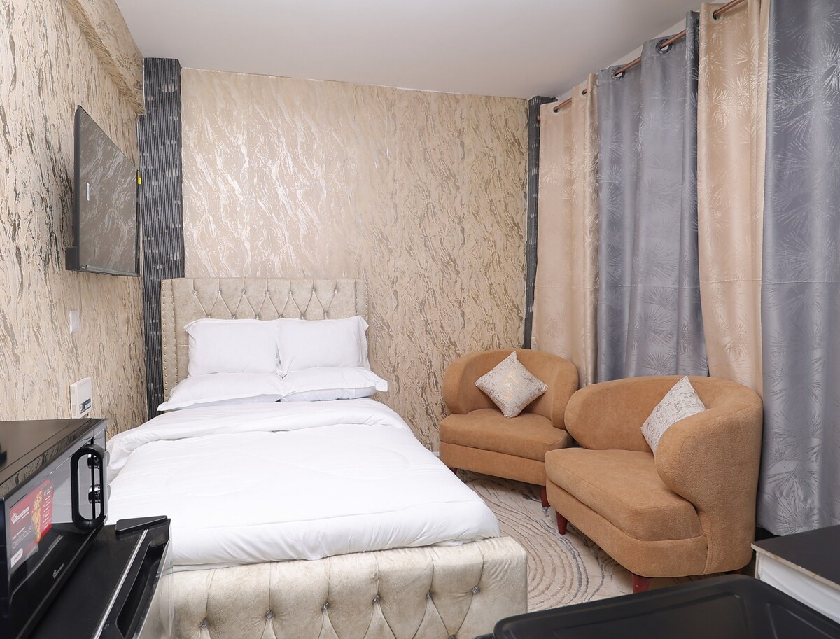Studio mewah dan nyaman, 1 kamar mandi Airbnb berlokasi di Kunste Hotel Section 58 dekat SAROVA WOODLANDS, KFC &JAVA. 5 menit berkendara dari Nakuru CBD. Lengkap dengan semua fasilitas modern seperti area makan, Google TV, kulkas, microwave, kompor induksi, parkir pribadi gratis, dan Wi-Fi gratis. Nikmati akses mudah ke toko dan restoran populer dari tempat menginap menawan ini.
