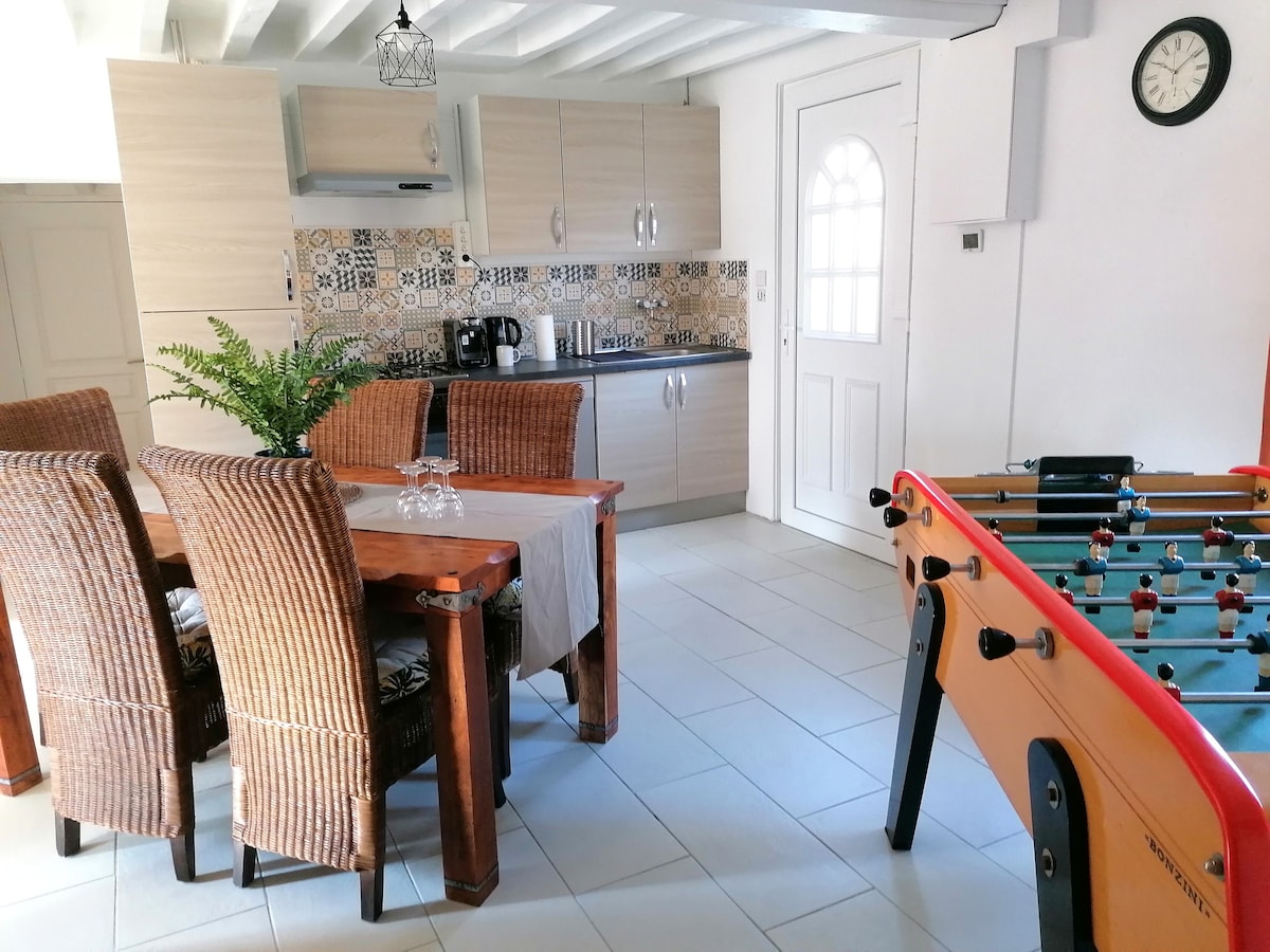 rumah desa. mobil parkir pribadi. dapur lengkap dan dilengkapi. tempat tidur berukuran 140 dan tempat tidur tradisional berukuran 120 yang disebut "roller" Harap perhatikan bahwa tempat tidur kedua untuk satu orang berada di lantai atas. Area meja, kamar mandi dengan toilet, beranda untuk merokok taman pribadi. Wifi. Seprai handuk dan bahan habis pakai disediakan terdaftar di Balai Kota Oizon Registrasi SIRENE FR - PRLT894