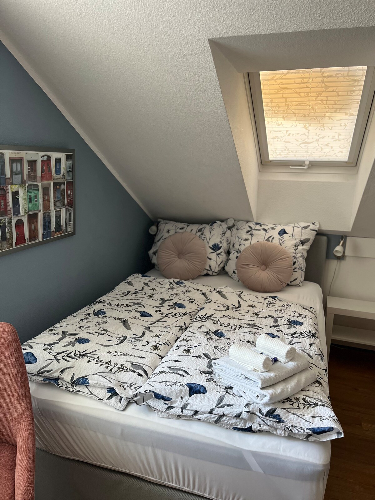 Rekreasi dan relaksasi di kaki Black Forest. Unik: tenang namun dekat dengan kota. Dalam beberapa menit berjalan kaki Anda dapat mencapai transportasi umum, yang dapat membawa Anda dekat dengan kota dalam waktu singkat atau untuk bersantai di dekat alam Anda. Ideal untuk akhir pekan yang diperpanjang selama dua hari, atau minggu liburan yang santai. Namun, sofa lipat juga memungkinkan tambahan satu hingga dua orang tambahan. Teras yang dilindungi privasi memungkinkan privasi