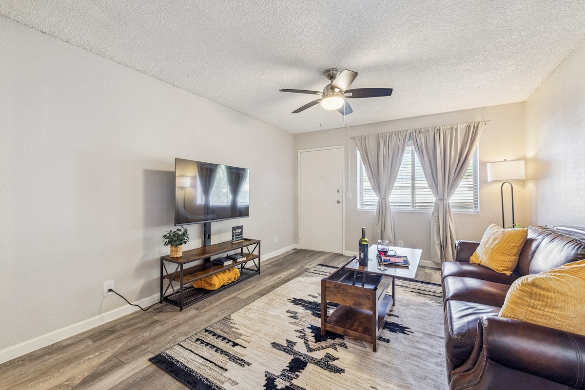 Nikmati 1 tempat tidur pribadi kami yang baru direnovasi dan dirancang secara profesional, 1 kamar mandi pribadi. Suite yang bergaya dan nyaman ini mencakup dapur lengkap dengan peralatan baru, ruang kerja, ruang tamu, dan kamar tidur dengan lemari dan kamar mandi dalam. Lokasinya hanya berjarak 15 menit dari destinasi utama, seperti ASU, Bandara Internasional Sky Harbor, dan tempat wisata yang menyenangkan. Kami menawarkan parkir gratis di properti, selain wi - fi, Roku TV, dan perlengkapan mandi. Kami akan senang menerima Anda!