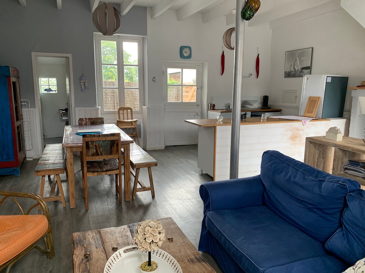 Rumah kecil/apartemen baru - baru ini seluas 40m2 dihiasi dengan baik, ideal untuk menjelajahi wilayah semenanjung Guerandanpen (Mesquer/Quimiac/Piriac - sur - Mer / Guérande/La Baule) yang terletak di antara rawa, darat, dan laut Ideal untuk pasangan atau keluarga yang terdiri dari 4 orang (dengan tempat tidur sofa di ruang tamu) Kemungkinan untuk memarkir mobil Anda di halaman di depan rumah Kemungkinan untuk mengikuti tur berjalan kaki, bersepeda, dan menikmati pantainya. Bersantai di rumah yang tenang dan bergaya ini