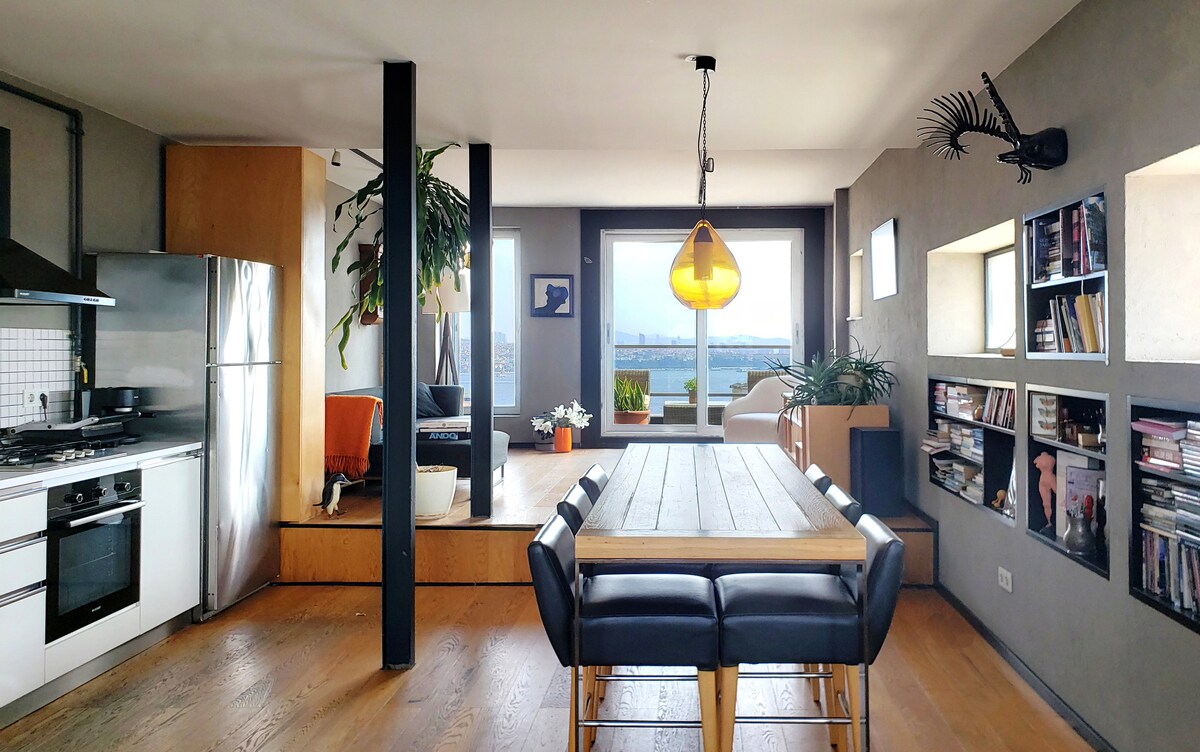 Nikmati Istanbul di rumah bergaya dengan pemandangan Bosphorus yang berlokasi di lantai atas Setup.(Cek dari istanbulsetup) *Berlawanan dengan dermaga feri pulau. Naik feri dan kunjungi Kepulauan Putri yang indah. *Di pusat transportasi;funikular, metro, taksi laut, bus *Istana Dolmabahçe, Galataport İstanbul , Taksim, Beyoğlu dan semenanjung bersejarah berada dalam jarak berjalan kaki. Akan menyenangkan merasakan budaya İstanbul di sini.